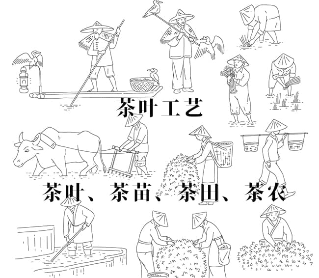 采茶素材-茶叶茶农茶艺农业-种植茶叶制茶矢量素材集