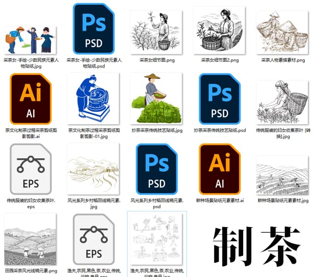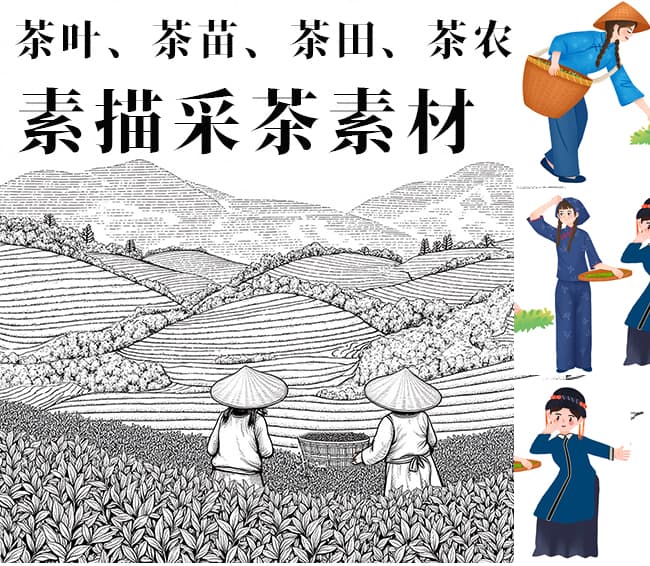 采茶素材-茶园茶叶茶农茶艺农业-种植茶叶制茶矢量素材集